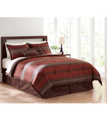 Bedding. Exclusively ours! Step into a contemporary atmosphere when you rest in your chic bedroom draped in Stanford bedding. The Stanford comforter set treats your bedroom to updated elegance in warm brown and terra-cotta orange. Using a transitional stripe design, the woven bedding will make a great addition to any master suite or guest bedroom this season. Available in Full, Queen and King sizes Full: 82x86" comforter; 54x75" bed skirt Queen: 90x90" comforter; 60x80" bed skirt King: 102x90" comforter; 78x80" bed skirt Set includes: Comforter, bed skirt, two shams, … Read more