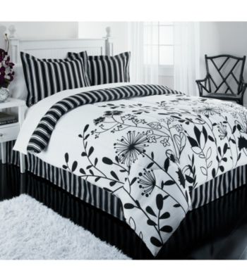 Bedding. Exclusively ours! Add a contemporary design in classic colors for dream-filled sleep with the Renee bedding set. With our Renee comforter set, you can infuse your bedroom with modern style and up-to-date colors. Each piece is coated in either a modern floral pattern in black and white, or in ever-classic black and white stripes. Available in Twin, Full, Queen and King sizes Twin: 66x86" comforter; 39x75" bed skirt with a 14.5" drop Full: 80x86" comforter; 54x75" bed skirt with a 14.5" drop Queen: 88x88" comforter; 60x80" bed skirt with a 14.5" drop King: 102x88" … Read more